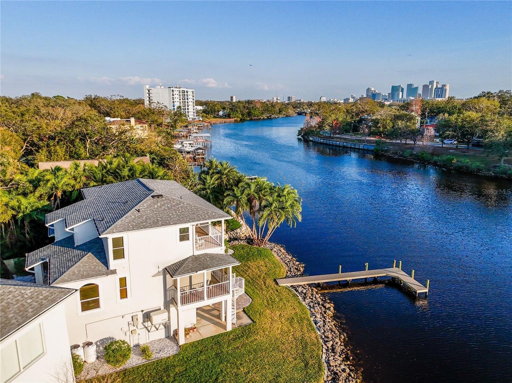 There is something peaceful about watching the Hillsborough river flow. Enjoy coffee from your porch and you will never tire of seeing the boats and wildlife just steps from your backdoor or from your private dock. Riverfront homes are few and far between especially this close to downtown Tampa and Armature Works. Don't miss your opportunity to capture your own tranquil waterfront escape on a quiet cul-de-sac in the heart of Riverside Heights. This 3-story home has been meticulously cared for and is FULL of recent upgrades including : new roof, new refrigerator, new freezer, new wine fridge, new generator, new water softener, new washer and dryer set, and newer AC units and ductwork. A large 7800sf lot, this location offers 110 feet of water frontage with a dock already in place. And room for a pool - renders available! This 3-story home is a spacious 2572sf of living space split between 2nd and 3rd floor. The home has an upgraded elevator complete with glass doors and services all levels, Main floor living offers a nice sized family room with access to a screened-in balcony full length of the house. The kitchen is a gourmet chef's delight with high end Miele appliances including dual cooktops, dual sinks , dual ovens and dual warming drawers! Ready for lots of entertaining and food prep, the kitchen offers a full size built-in refrigerator and full size built-in freezer and an additional extra large wine refrigerator. Just off the kitchen is your dining room with new custom display shelves and built-in dining room hutch. Left side of the main floor are both secondary bedrooms with a shared hall bathroom. The third floor is a private owners retreat. It has it's own large balcony over looking the river. The very generous bedroom has room for an office nook or even exercise space. It has a professional closet buildout and dressing room. And recently renovated Owners bathroom with walk in shower, tub and two separate sink areas. The Owners space is truly expansive and offers lots of storage space. One the first floor you have a large garage with an oversized storage area or room for a workshop. Out back you have more covered patio space and an outdoor fire pit! The large flat backyard is your blank canvas. Riverside Heights has two nearby parks with playgrounds, fields and courts. The Riverwalk is a short walk away with access to miles of pathway way taking you past Armature Works, the Straz, Amalie and more! Life is busy enough, make your home a tranquil respite from the rest of the world. Come home to 2902 N Shoreview and discover the joy living on the water in downtown Tampa.