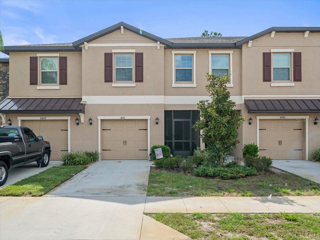Welcome to 8491 Essington Street – where modern comfort meets serene natural surroundings! This beautiful 3-bedroom, 2.5-bath townhome, built in 2021, is nestled in the gated community of Ventana at Waters Edge and backs up to a lush conservation area, offering peace, privacy, and a picturesque view right from your own backyard. Step inside to find a spacious open floor plan with an abundance of natural light. The chef’s kitchen boasts granite countertops, stainless steel appliances, 42” cabinets, a breakfast bar, and pendant lighting. The dining area flows seamlessly into the screened-in lanai and extended paver patio—perfect for relaxing or entertaining while enjoying tranquil nature views. Upstairs, you’ll find all three bedrooms plus a generously sized loft ideal for a home office, media room, or playroom. The convenient upstairs laundry includes washer and dryer. The primary suite offers a peaceful retreat with an en-suite bathroom, dual sinks, and walk-in closet. Additional highlights include: 1-car garage with automatic opener Water softener system Stylish tile flooring throughout main living areas Covered front entry with screened veranda As a resident of Ventana at Waters Edge, enjoy resort-style amenities including two sparkling pools (one private to Ventana residents), a fitness center, clubhouse, basketball courts, playgrounds, and more. Ideally located close to shopping, restaurants, schools, and major highways—this townhome truly has it all. Low-maintenance, move-in ready, and priced to sell—schedule your showing today!